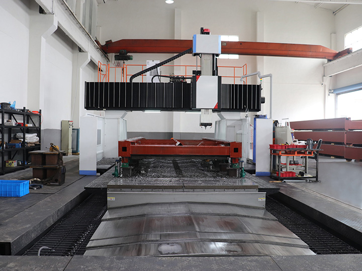 龍門加工中心的工作臺基本上是長方形的。工作臺、床身、立柱、橫梁和滑枕等大鑄件采用米漢納鑄鐵,鑄件內(nèi)腔系蜂巢式復(fù)合排列結(jié)構(gòu),均經(jīng)時效及二次回火處理,消除殘留內(nèi)應(yīng)力使材質(zhì)穩(wěn)定,確保工件加工精度的穩(wěn)定及機床壽命。